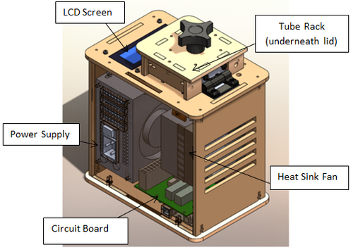 On October 18, 2012, our group first tested the Open PCR Machine number 13. At first, the machine seemed overwhelming in its design. However, after following the instructions and advice from peers and professors, we were able to determine how to properly setup, program, and run a simple test.