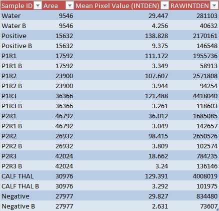 (Images from: ScienceDirect.com and http://hshgp.genome.washington.edu/teacher_resources/modules-view.htm) ResultsThe following chart shows the results from the imagej software processing. Each image that was taken with the smart phone was analyzed through the imageJ program to establish the amount of fluorescence each "drop" produced. The images below the table show the substances that were known. Calf Thymus DNA was expected to have fluorescence, as the Water was expected to have no fluorescence. This showed that the detection method was working correctly. Water: tested negative for cancer Calf Thymus DNA: tested positive for cancer