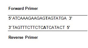 Retinoblastoma is a rare, cancerous tumor of a part of the eye called the retina. The disease is caused by a mutation in a gene controlling cell division, causing cells to grow out of control and become cancerous. The cancer generally affects children under the age of 6. It is most commonly diagnosed in children aged 1-2 years. The information regarding this disease is here.[6] An image of the eye is here. [7] The marker that is being use is rs121913297. [8] The DNA sequence is TCAAACGTGTTTTGATCAAAGAAGAG[G/T]AGTATGATTCTATTATAGTATTCTA [9] and found in chromosome 13. Primer Design Retinoblastoma Forward Primer: 5' ATCAAAGAAGAGTAGTATGA 3' There is a mutation from a G to a T Reverse Primer: 3' TAGTTTCTTCTCATCATACT 5' Prostate Cancer Forward Primer: 5' AGGCTTCCTCAACTTACACG 3' There is a mutation from a G to a T Reverse Primer: 3' TCCGAAGGAGTTGAATGTGC 5' If the sample carries the mutation, then the sample would test positive. If it does not, then the sample would test negative because the primers would not be able to bind to the DNA because it does not contain the proper sequence.