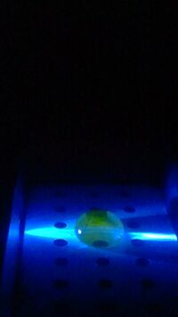 The fluorimeter is an instrument that detects fluorescence; the quantity is related to the amount of fluorescent material and is indirectly proportional to the molecule being detected. The slide that enters the fluorimeter is coated with a rough layer of Teflon which allows drops of liquid to form beads on the surface due to the surface tension. Because of this, the light from the Blue LED is focused in the drop which increases the intensity, and the SYBR Green in the liquid causes the presence of DNA to be indicated through a green phosphorescence. In this procedure, two drops of SYBR Green were placed on the slide, and then two drops of the solutions from the samples being tested were placed on top of the SYBR Green. The fluorimeter will give a visual color signal when dsDNA is present, and this can be quantified by taking an image. This is done by placing the smartphone camera (in this case, a Samsung HTC 1) into a diffraction grating and mounting it, and then setting exposure and saturation levels. By the use of a self-timer, the least amount of outside light was allowed in.