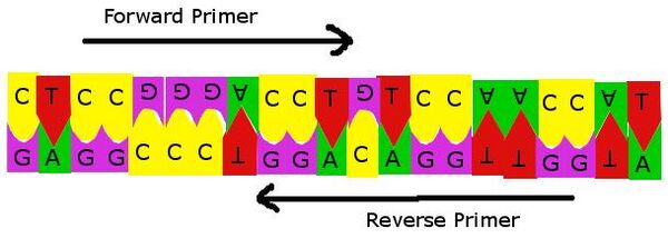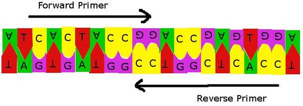This image illustrates the primer attaching to the reverse primer. The primer that is created attaches to the section of DNA that is mutated and is then able to be replicated with PCR, because it will allow the Taq polymerase to begin attaching nucleotides. Bayesian Information