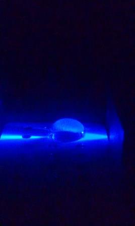 Fluorimeter Measurements Fluorimeter Assembly 1. Empty the given container of the separate parts for the fluorimeter. 2. To create a darker environment for the images, unsnap one side of the container and place the container upside-down so that the unsnapped flap of the container flips up. 3. Place the smartphone to be used for the experiment into the given black stand to provide a stable stand for the camera.  4. Position LED box with the drop in the back of the container with the camera parallel to it so that the camera is viewing light passing through the water droplet.