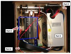 Experimenting With the Connections Part 3: LCD screen Part 4: Heat Sink Part 5 Rsenda ATX power supply Part 5 OpenPCR circuit board (Content by Sairah F When we unplugged the LCD screen (part 3) from the Open PCR circuit board (part 6), the screen went blank the machine had no visual output.