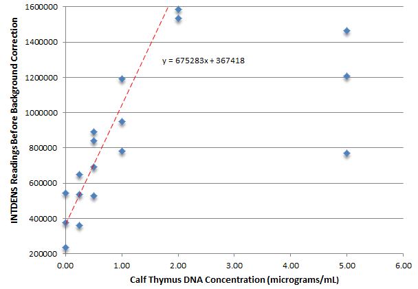 General trendline of INTDENS readings vs. DNA concentration