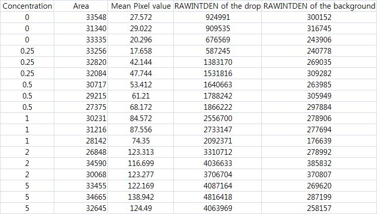 The fluorescence technique works by adding a fluorescent die to a liquid with a certain amount of DNA concentration. Teflon coated glass slides were used with a single-drop fluorimeter in order to produce spherical drops on the surface as a result of the hydrophobic properties created by the various circles of uncovered glass.