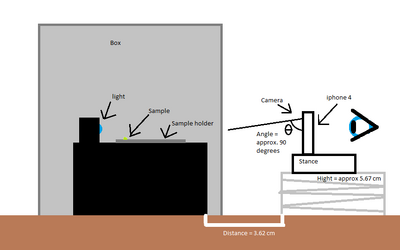 Single-Drop Fluorimeter [Add a PHOTO for bonus points] The Single-Drop Fluorimeter is a box shaped device that shines a specific light spectrum to activate the florescent dye in the sample.The light is turned on by a switch on the side of the devices. The sample is placed on specially made glass slide that is perforated and hydro-phobic, the slide can then be placed into the Fluorimeter.