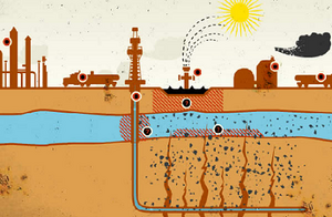 Hydraulic fracturing or “fracking” is a way that allows for the retrieval of natural gases or oil from below the surface that were unsalvageable through the use of drilling. The process begins when a hole has been drilled into the surface containing the desired substance, and then a pipe with holes where the target substances are is placed into the cavity and flushed with fracturing fluid or gas, which cause the rock formations containing the natural resources to break. Once the surrounding earth crumbles due to the increasing pressure, the fracturing fluid flow is cut off and proppants (sand or ceramic beads) that were pumped in with the fracturing fluid hold the crevices open and the target materials flow up to the surface.