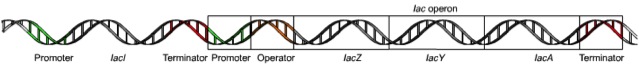 The lac operon itself is a set of genes found in certain bacterias' DNA that is required for the transport and metabolism of lactose. Most commonly found in Escherichia coli, the operon was the first example of a group of genes under the control of an operator region to which a lactose repressor (LacI) binds.