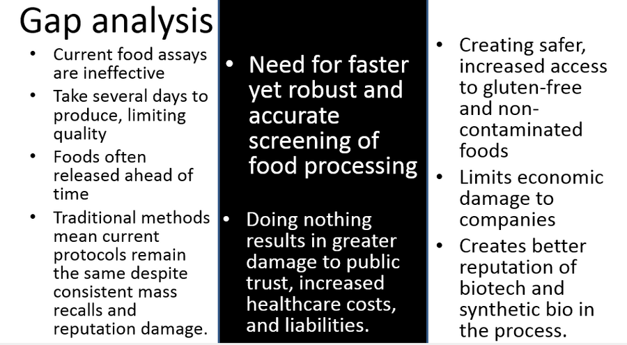 The food packaging industry is worth $100 billion dollars annually. Among that, about $77 billion dollars represents that meat packaging industry. Despite representing such a high economic value, the food industry still has recalls and contamination scandals every year. Contaminants often include pathogenic bacteria and allergens such as gluten. Furthermore, food waste equates 1.3 billion tons annually. Lack of effective processing results in greater environmental damage through waste and economic damage through business scandals.