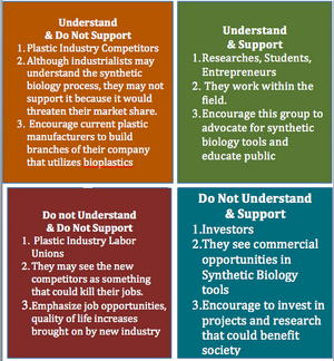 The IPTG-input/fluorescent protein-output is proof of concept for the production of synthetic materials such as plastic being created by bacteria. In the original project, a synthetic compound was utilized to trigger the metabolic pathway for the degradation of lactose. Using synthetic biology, we can splice together different genetic features to create an entirely new metabolic response. We can find a promoter that responds to a different input. In the natural Lac-operon, the cell produces proteins for the breakdown of lactose. We modified the natural process by initiating the production of GFP instead of the functional proteins found in the original process. It seems that if we are able to control our protein output, we can produce synthetic products as well.