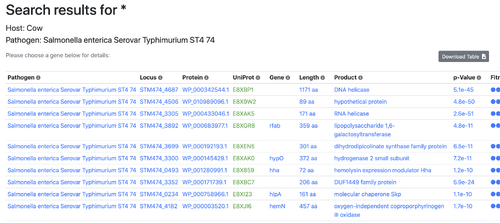 - This database contains 90,000 entries, including information from 15 pathogenic bacteria among 5 host vertebrates, across 10 various tissues.