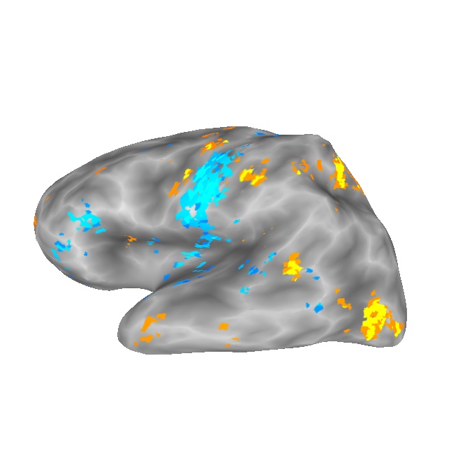 Click on load dataset to view. Below are some pictures of the original activity from three subjects and the same activation on the fsaverage brain. Cases FL, FM, FN