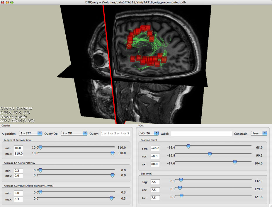 DTI Query allows any number of cuboid VOIs to be used isolate fiber pathways