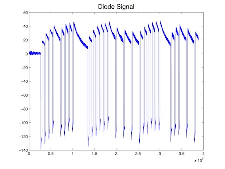 Here is an example of how the audio and diode signals for a whole experimental session look like :