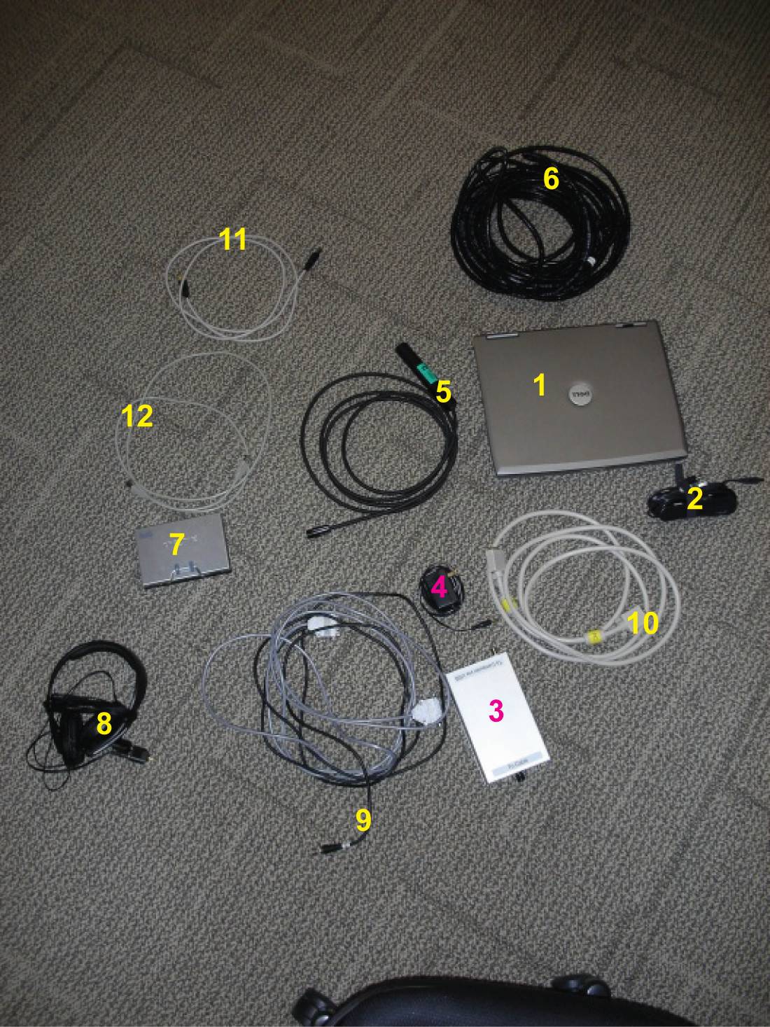1 Button response stick (5) to fiber optic extension (6) to FORP interface unit (3)
