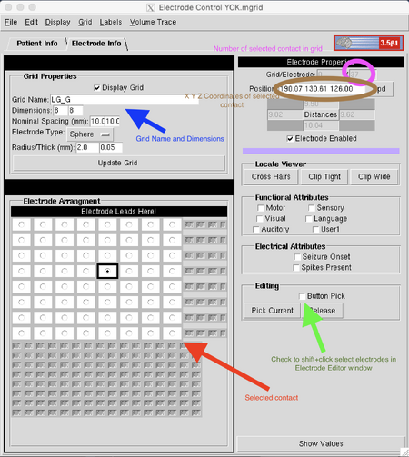 In addition, the iELVis outputs, especially for grids, may not be in the same order as the patient's montage; in particular, iELVis will list grid contacts by column, not numerical order. An updated form of the afni2elvis.m script called afni2elvis_reorder.m will both convert the coordinates between FreeSurfer and AFNI/SUMA space and reorder the labeled coordinates according to the patient's montage. The electrode names in iELVis must match the names in the montage (not including the contact number or the LS/RD tag) for the script to work.