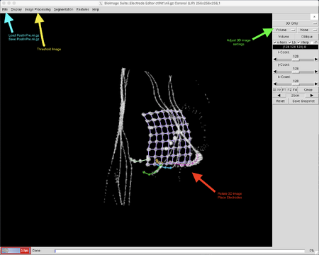 BioImage Suite is a software package for visualization of bioimaging data, mainly developed for abdominal/cardiac imaging and neuroimaging. Currently, the version we use is BioImage Suite 35; a web version is available but is set up differently from our preferred version. The required version of this software is stored in the BCM ECoG server and can be installed using terminal commands: