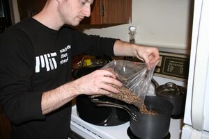 One of many batches of homade beer I've made. This one is called Elbro Nerkte Brown Ale from The Complete Joy of Homebrewing (3rd Ed.) by Charles Papazian pg. 196.
