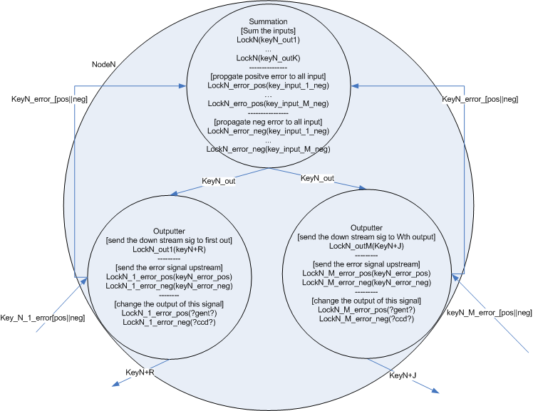 The general node also contains additional locks for adjusting weights based on error signals. [finish explanation of how the error machinery works]
