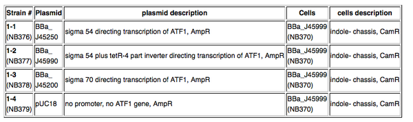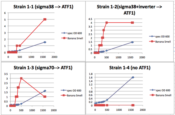 Note: This lab is also described in this Methods in Enzymology chapterTeacher ConsiderationsThis lab provides a valuable opportunity to teach microbiology techniques, population growth dynamics, molecular genetics and basic synthetic biology concepts in a meaningful, real world way. As can be seen in the discussion questions for the lab report, the analysis of the lab will provide the students with a chance to do meaningful error analysis and examine the difference between quantitative results and qualitative results. This lab offers two different protocols based on the time the teacher wishes to allow. Each of these protocols covers the same concepts but allows for different emphases. Protocol A--Condensed data collection: This is a shorter procedure for the students. This shorter protocol emphasizes data analysis over data collection. With this protocol the teacher can choose to have the students do the initial bacterial culturing if more microbial techniques are to be emphasized. Essentially, a day prior to any data collection, the large cultures are set up. Part of the starter culture is immediately removed and placed in the refrigerator. This serves as the lag phase sample. After 5-7 hours, a second sample is removed. This serves as the log phase sample. The last third of the culture should be allowed to grow overnight. This serves as the stationary phase sample. The samples can then be provided to the students the following class day, allowing the students to collect data in single lab period. Go to Protocol A for the detailed protocol. Protocol B--Growth curve data collection: This version provides a greater emphasis on collection of growth curve data. In this version, the students subculture from the overnight samples and then assess the banana smell and turbidity (population) of the subcultures every twenty minutes. To increase the number of data points, different classes can measure the same subcultures throughout the day. Alternatively, the subcultures can be refrigerated and warmed back to room temp for 30 minutes prior to the next data point collection. You should expect to collect data over three days to get data points from all phases of the growth curve. Go to Protocol B for the detailed protocol. Both procedures include instructions for using a spectrophotometer to measure the population growth. If a spectrophotometer is not available, the population can be easily measured using the McFarland Turbidity methodology. Instructions for this measurement are also included with each protocol. An introductory power point that can be adapted to either protocol can be found here. Also useful might be the MIT iGEM team presentation [video] and their ppt. Teacher Provides