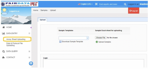 Metadata sheets can be uploaded through the ‘Assay Sheet Uploading’ tab on the MIT FairData website. Choose a file from your computer to upload and click the green ‘Upload Samples” button. The upload may take a moment to process. When the samples have been uploaded, a Feedback Sheet will be provided.