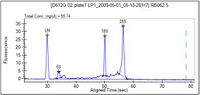 The Caliper RNA analysis results are almost the same as Agilent Bioanalyzer results. Caliper Life Sciences LabChip GX system analyzes RNA by electrophoretic separation on our microfluidic sipper chips. RNA molecules are separated and subsequently detected via laser induced fluorescence. The LabChip GX Software displays the raw data as an electropherogram and generates a gel-like image for visualization, data such as peak heights, peak areas, concentration, etc., are then calculated and stored as digitized data as text files and tables. These parameters are next used to determine an RQS (RNA Quality Score) number, a calculated score that rates the quality of RNA samples.