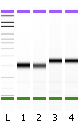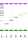 Here, the pippin prep has been used to isolate individual bands (lane 1-5) of a 50bp ladder (lane L). This isolation can be preprogrammed or based on peak position. Band isolation is useful for cloning and purification of PCR products.