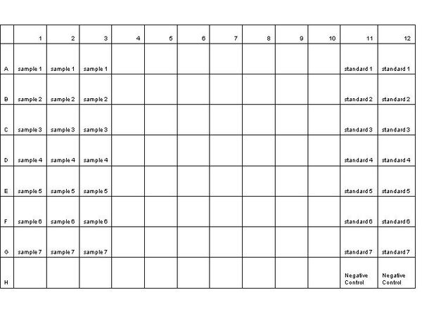 Make the following reaction mix for each well being used. Keep in mind that each sample requires three wells (triplicates) and the 16 standard wells.