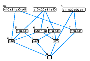 Given an undirected graph with [math]\displaystyle{ N }[/math] vertexes and [math]\displaystyle{ M }[/math] edges, a chemical program is designed as a chemical reaction network with [math]\displaystyle{ 2N }[/math] molecular species and [math]\displaystyle{ 2(M+N) }[/math] reactions as described in Appendix B. There are [math]\displaystyle{ 2N }[/math] species because two species are employed for each vertex to represent inclusion in or exclusion from the maximal independent set. Applying the chemical organization theory, the reaction network is decomposed into overlapping sub-networks called organizations, sets of molecular species that are closed and self-maintaining. The organizational structure embedded in the network can be visualized as a Hasse diagram. Focusing on the organizations constituted of [math]\displaystyle{ N }[/math] species, the configuration of the species in any of these organizations corresponds to a maximal independent set. A proof of the association between maximal independent sets and organizations of size [math]\displaystyle{ N }[/math] in the reaction network can be found in Appendix C.