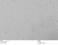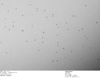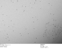 - This afternoon I also took TEM image of my newly synthesized gold nanoparticles. They seem fairly uniform in size with only a few aggregates present. The approximate diameter of each particle is 6.46 nanometers.