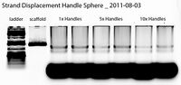 - While attempting to purify my spheres this morning that I had prepared yesterday, I noticed that I had forgotten to add scaffold (see below). Therefore I prepared a new batch of strand-displacement cargo handle open spheres for use tomorrow.