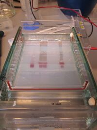 - I verified conjugates formed by running my solution on a 3% agarose gel for about two hours