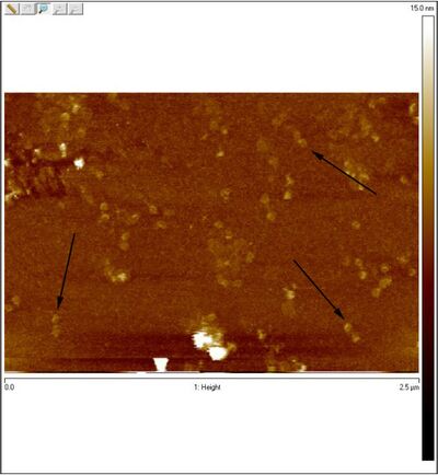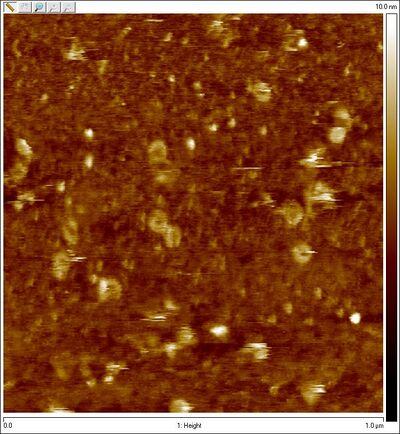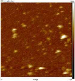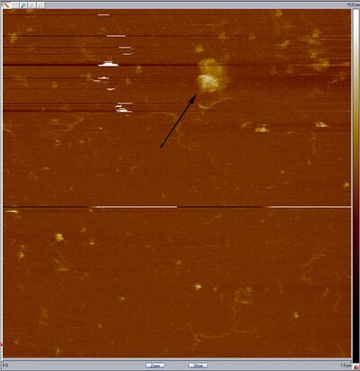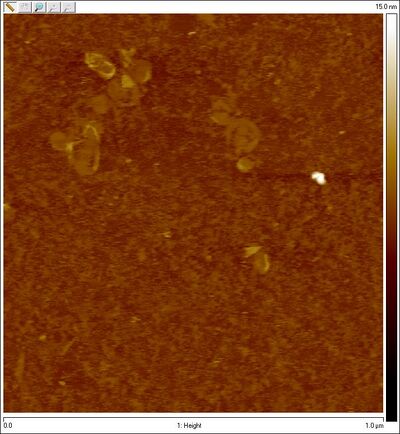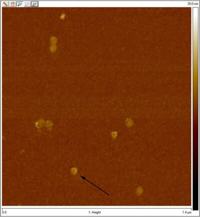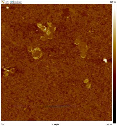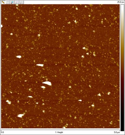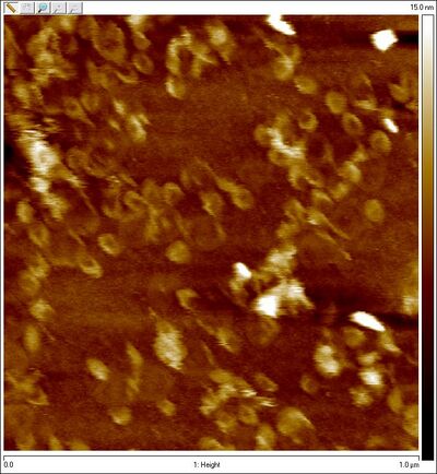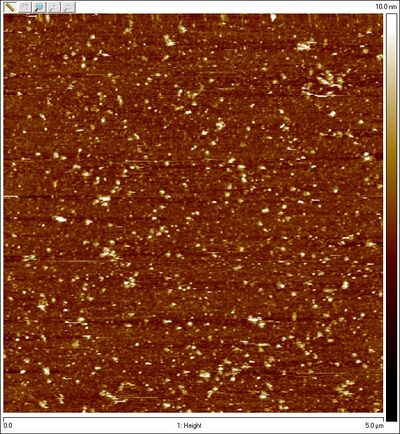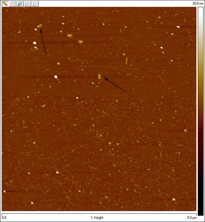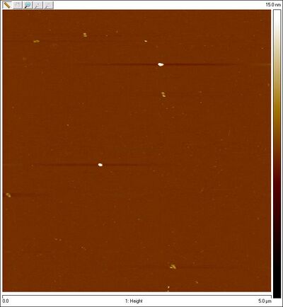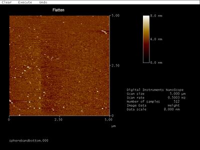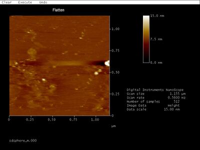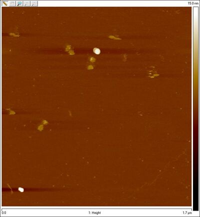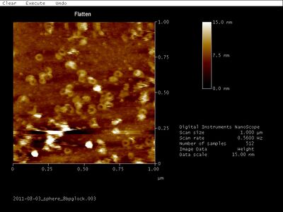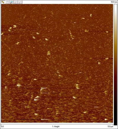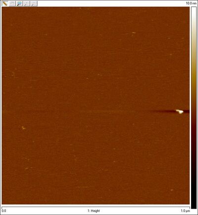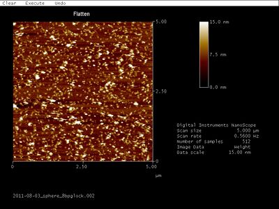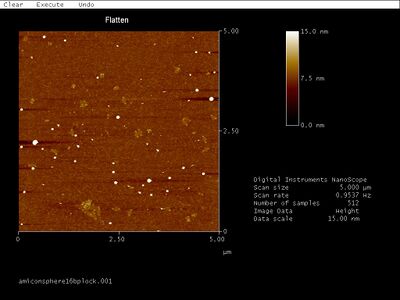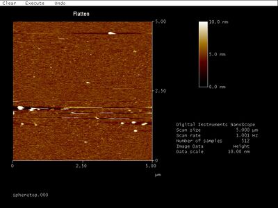 - Also AFMed the bottom part of the smear that is open Han spheres + equator staples in search of closed spheres. Here's what I saw: