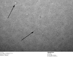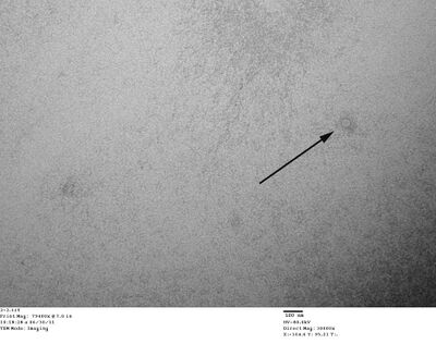 - Later, I talked to Wei about whether closed spheres would show up on the TEM, and he said they should, since a closed sphere is really 2+ layers of origami. So I tried TEMing closed and open Han et al. spheres again with a sample prep protocol involving double the sample depositing and staining time, but I'm still not sure if we saw spheres or not. There were a lot of circles with ~42 nm diameters that were dark on the inside and outside as expected of origami, but there were also similar circles with ~20, ~70 nm diameters.