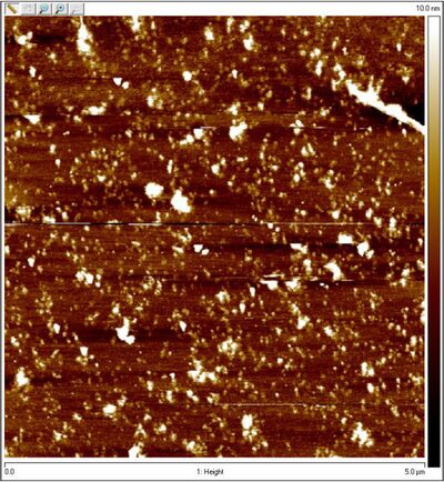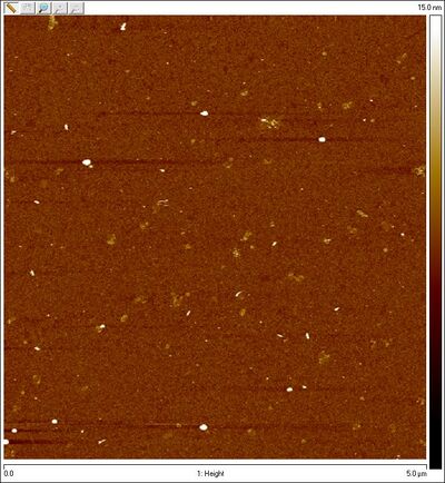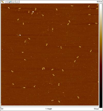 - We also imaged some long DNA origami rectangles with Ralf. We mixed staples, M13 scaffold, and folding buffer and put it all in the thermal cycler, then used the AFM to image it. Ralf and Adam also explained some AFM principles to us.