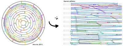 - Then I started working on reconstructing the sphere from Han et al.'s supplemental materials. It's not as bad as I initially thought, especially since they did all the calculations for us of how many bases should be in each ring layer of the sphere, where crossovers can happen, etc. It's a matter of accurately reconstructing their design. It took me almost all day, but I finally have a scaffold of the sphere done. Adam and I took a bit of time to figure out how to construct the southern hemisphere of the sphere and connect it to the northern hemisphere, since the paper only provides instructions for designing one hemisphere. We decided a mirror image should work.