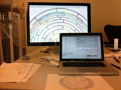 - In other, more uplifting news, I downloaded Maya and have started watching the short video tutorials that come with it. We plan to make a 3D model of the DNA origami sphere and write a Python script to tell us the caDNAno coordinates of any base in the 3D model. The goal is to be able to model more intuitively in 3D and then have the script translate the 3D model into caDNAno. Much more friendly than figuring the crossovers out on paper! I'm looking forward to playing around with Maya to make the model.