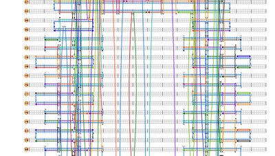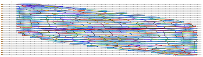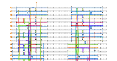 - More relevantly, I modified the staple-checking script to output all the staples that match as well as those that don't match. From this output, I color-coded the caDNAno file, making all matches black and all mismatches red. As expected, the matches and mismatches together accounted for all my staple strands. But that's still only 158; where are the other two?