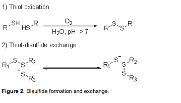 - Two chemical reactions are used to generate the DCL: thiol oxidation, which generates a mixture of disulfides from thiols, and thiol-disulfide exchange, which allows a mixture of disulfides to exchange and reach equilibrium, so long as a catalytic amount of thiolate anion is present. These reactions occur spontaneously in aqueous solution at pH values between 7 and 9. Oxygen from the air is sufficient to oxidise the thiols, and so no special reagents are required. The reactions may be quenched by simply lowering the pH of the DCL.