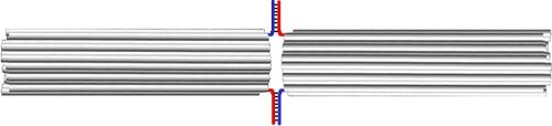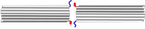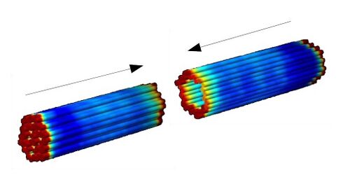 If we lower the pH around the construct all strands with the i-motif form a quadruplex and the two cylinders are no longer connected.