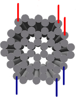 We designed four different constructs: with 2,3,4 and 5 pairs of complementary strands (Fig. 2-5). The red strands include the i-motif and the blue strands are the complementary strands.