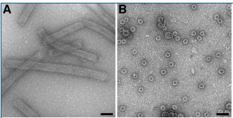 (A) Wild-type cylindrical shape. (B) R18A mutated proteins. (Pornillos et al., Structure of Full-Length HIV-1 CA: A Model for the Mature Capsid Lattice)