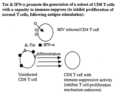 - Together, Tat and IFN-alpha promote the production of a type of CD8+ T lymphocytes that have immunosuppressive properties.