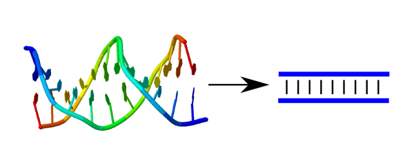For example, a simple DNA duplex is converted to a pair of connected, parallel lines.