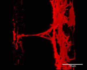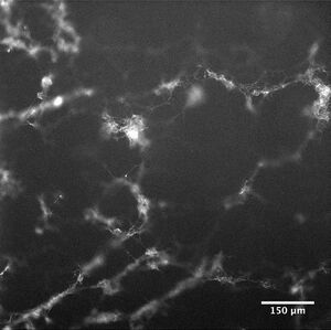 We found that the rhodamine labelled microtubules formed three dimensional micro meshes, with many microtubules “standing up” or orienting themselves perpendicularly to the plane of the flow cell surface. The meshes spanned the height of the flow cell, and to our knowledge, this is the first time that three dimensional structures have been created through the poly-L-lysine- microtubule interaction.