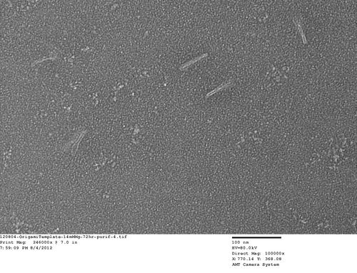 We used TEM to see if the structure itself would form. The structure seem to bias landing on their ends (on their helices, which is why we see a sliver of the structure.