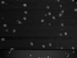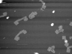 field DNA origamiはかなりの数が作成できていることが確認できた。しかしながら2D robotは複数の欠片が生成できただけで目的の形は観察されなかった。この欠片は丸い形をしており、多数のステイプルがアグリゲーションしていると思われる。