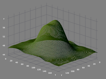 This is the gray scale graph using ImageJ soft.The area of this graph is expressed by FigureA1's yellow line. Z-axis's gray scale is separated to 256 gradation.The differences between maximum and minimum of the gray scale are about 0 gradation.