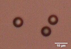 - ※We use polystyrene beads whose 1/4 was covered with Gold and 1/2 was covered with chromium.