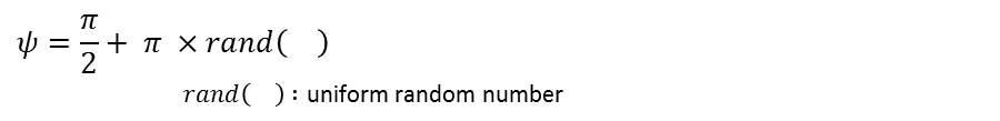 - We use uniform random number to determine the value of ψ. Following equation shows that bubbles can grow from anywhere on the hemispherical surface at the same possibility.